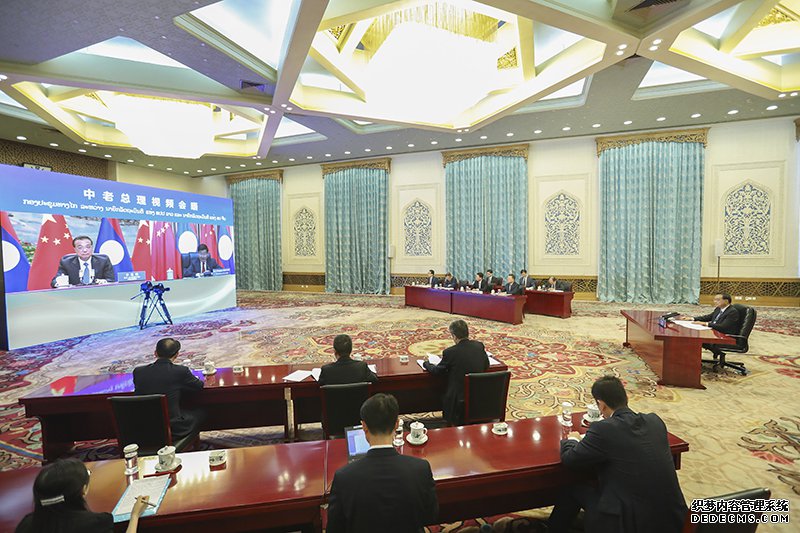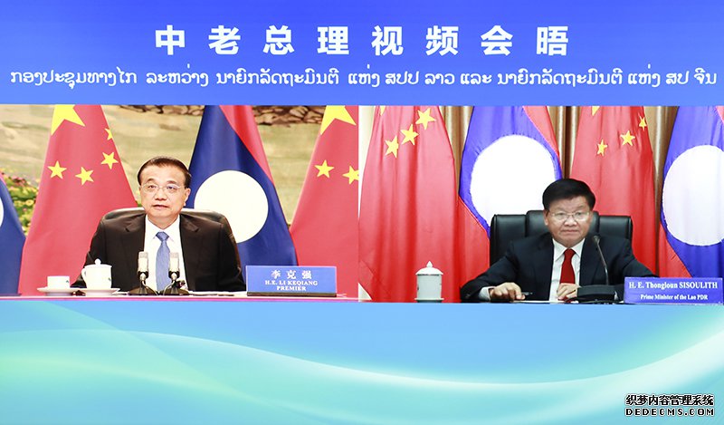 国务院总理李克强7月21日下午在人民大会堂应约同老挝总理通伦举行视频会晤。